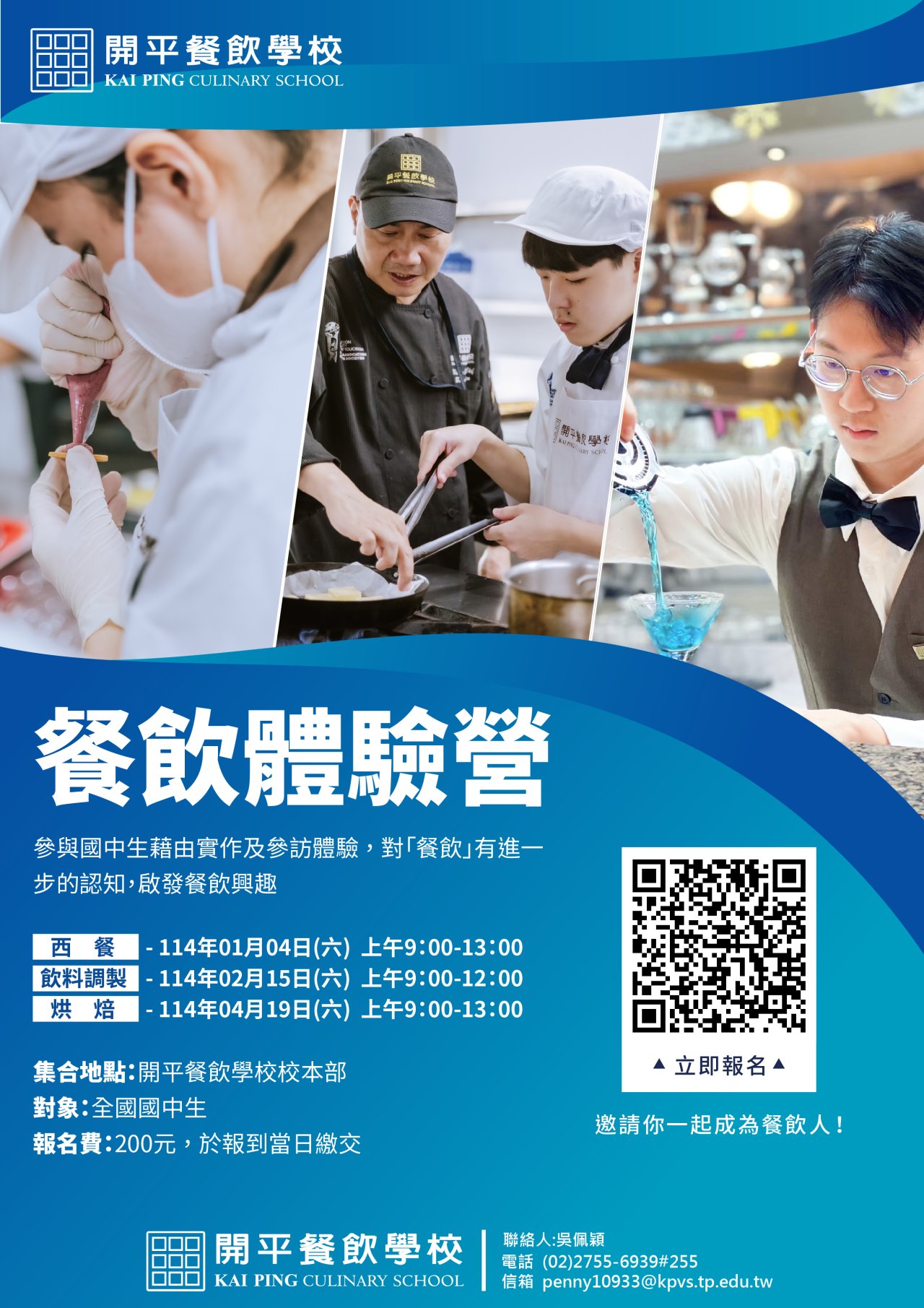 台北市開平餐飲職業學校辦理「開平餐飲學校113學年度餐飲體驗營」,訊息如下: