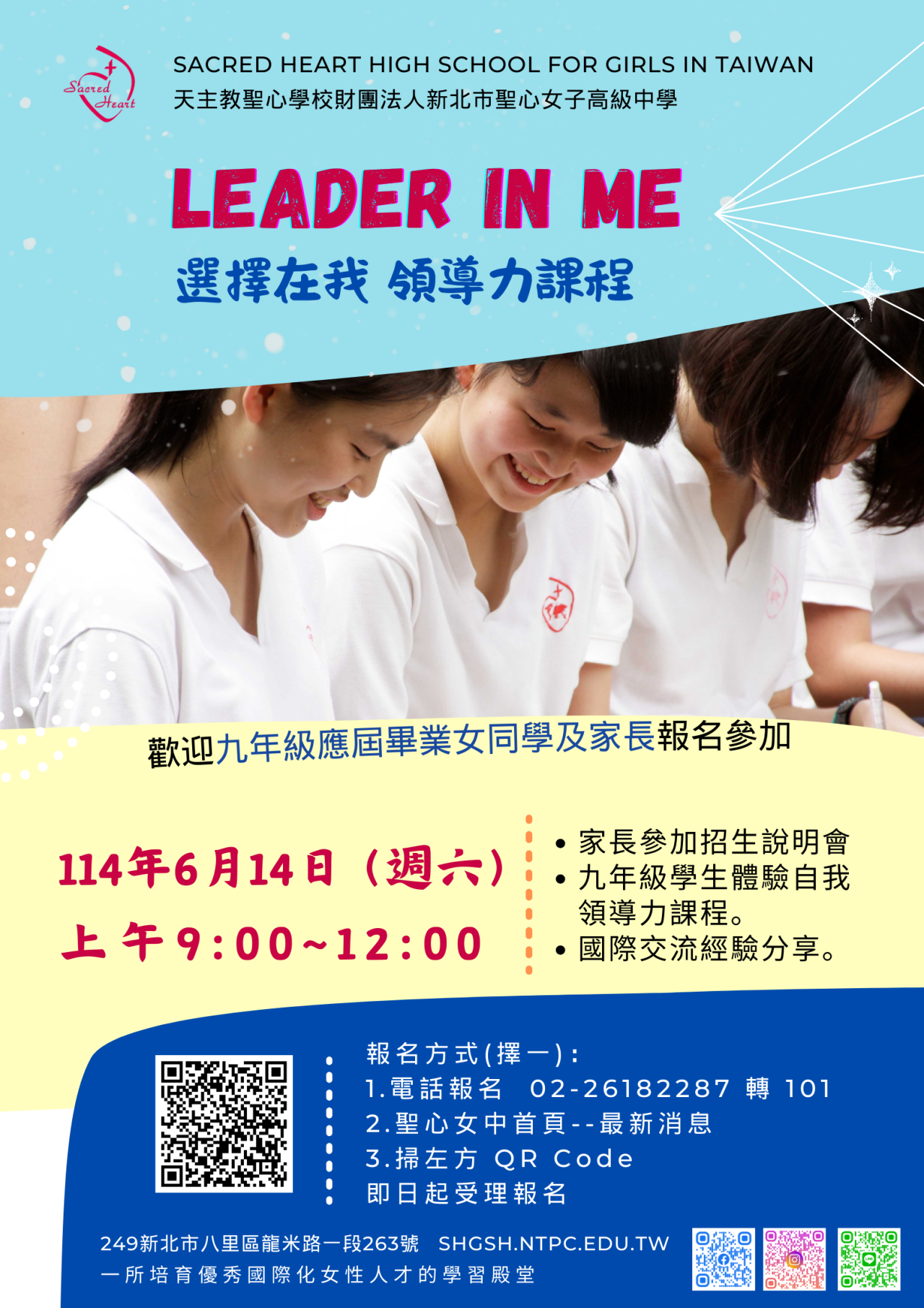 新北市聖心女中辦理114學年度聖心女中OPEN DAY 《Leader In Me》課程體驗活動,訊息如下: