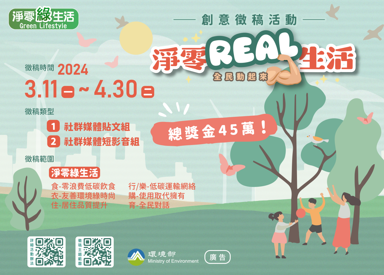 一、徵稿活動目的旨在為鼓勵民眾從日常生活中落實淨零綠生活轉型,以簡單明瞭又易於實踐的方式,