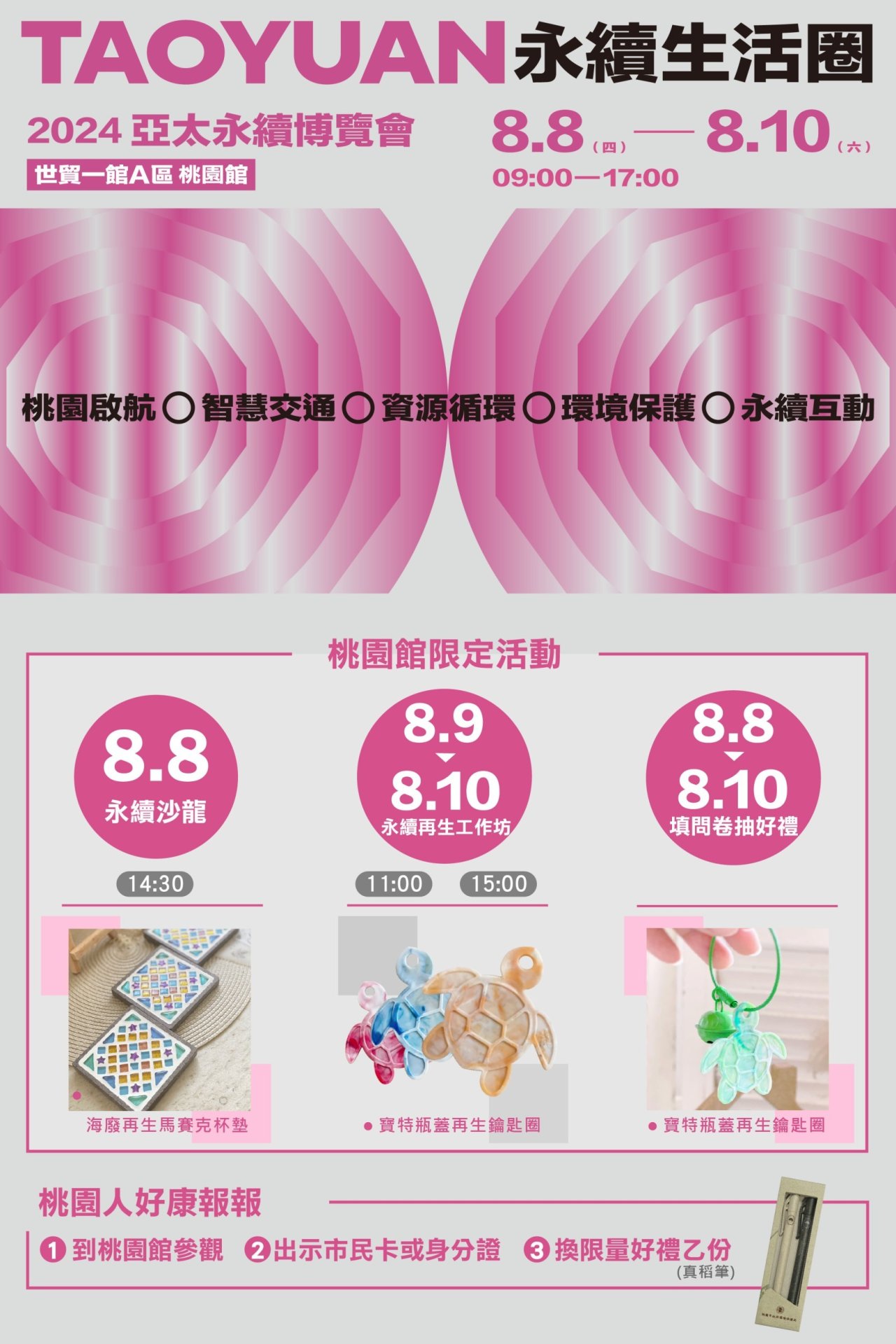 5大主軸,展期自88日至10日連續三天全方位展現桃園永續生活。
