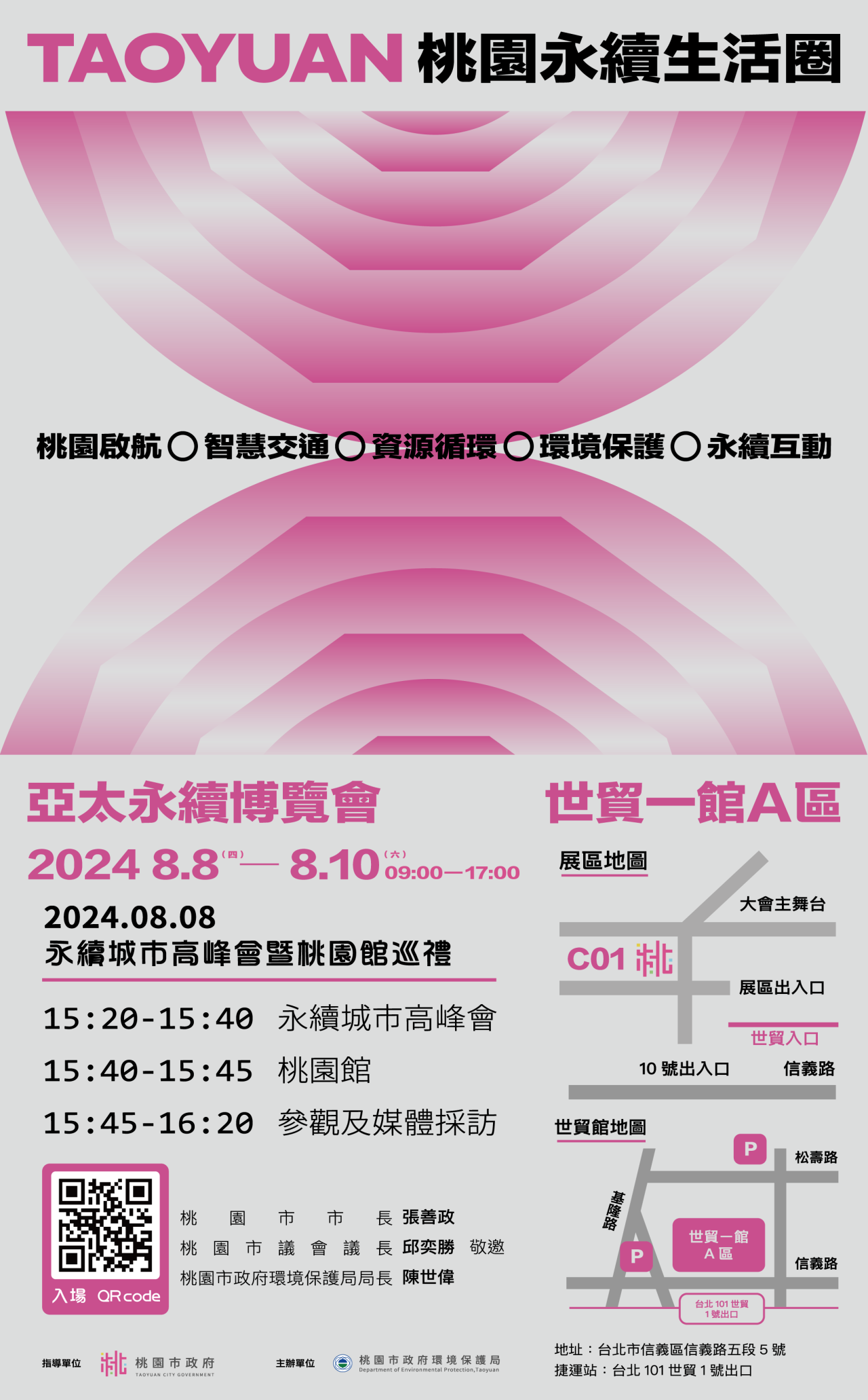 一、為展現桃園實踐永續發展、淨零碳排等作為,本府參與台灣永續能源研究基金會(TAISE)舉辦之「2024亞太永續博覽會」,