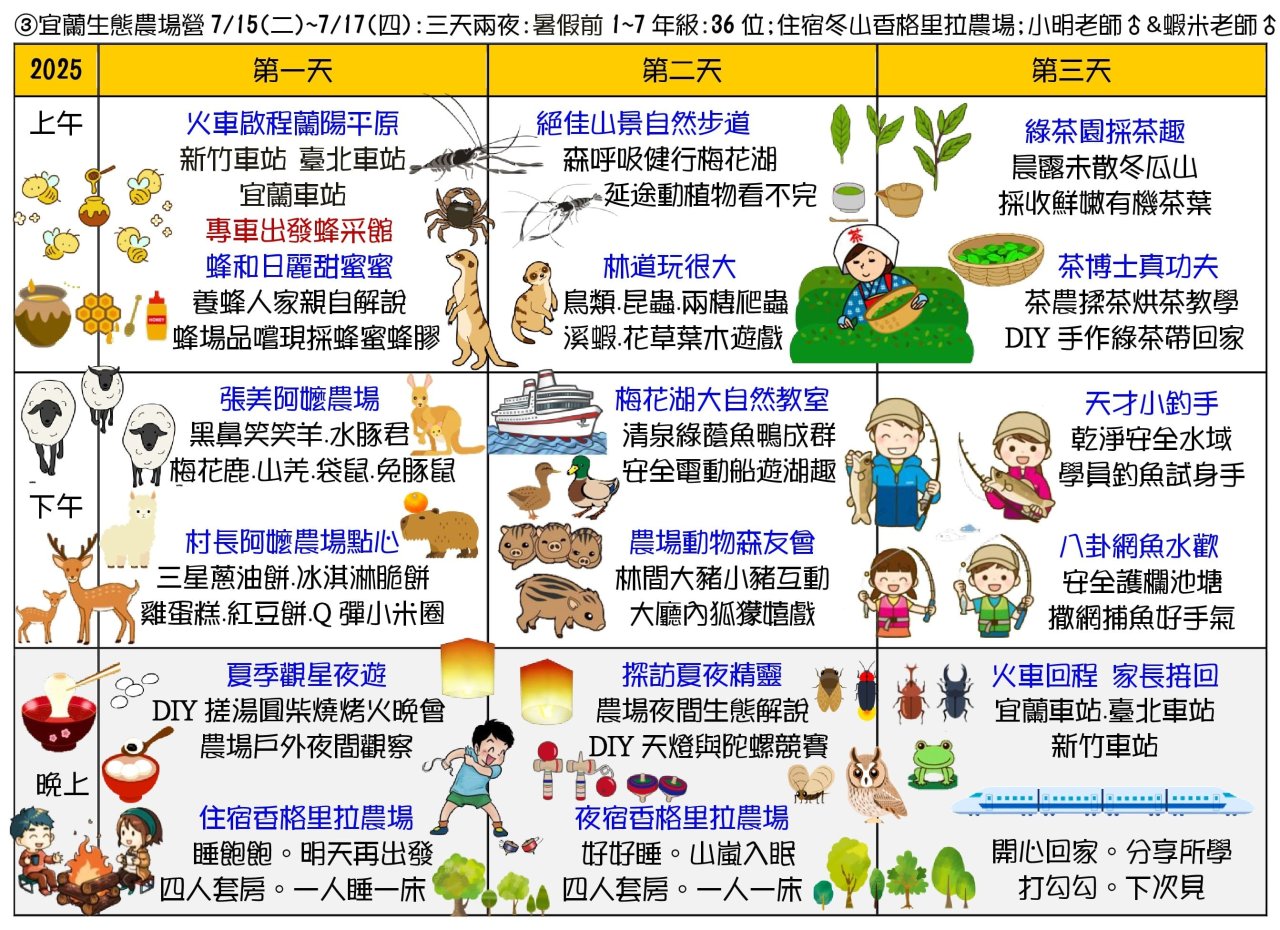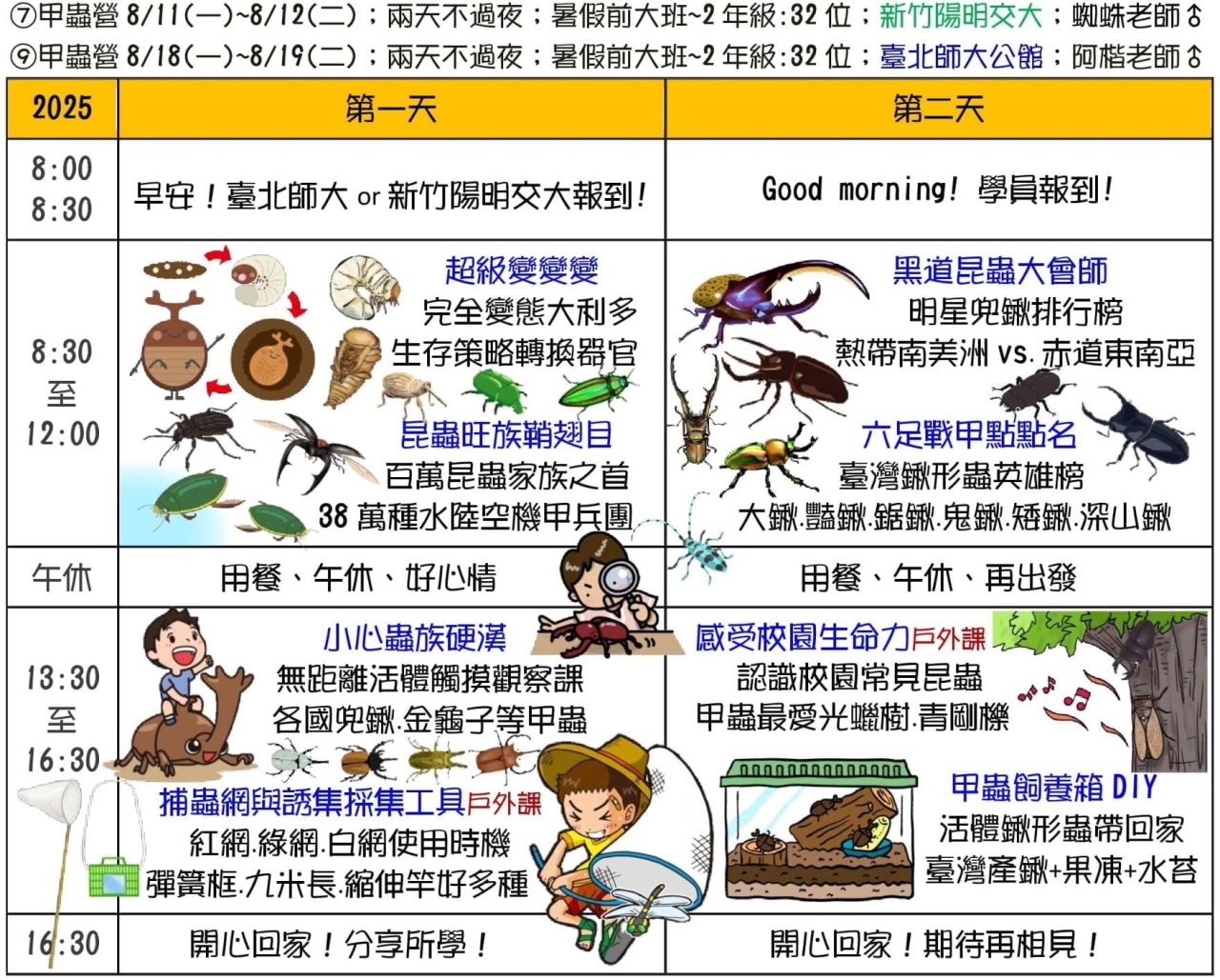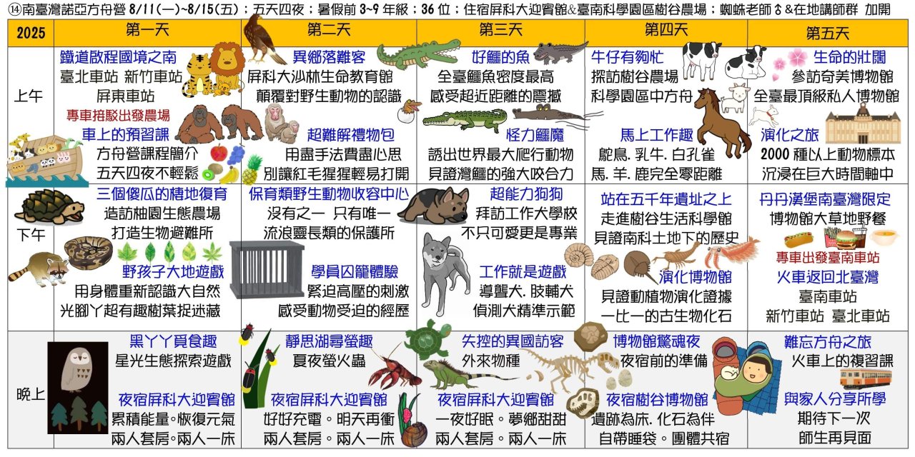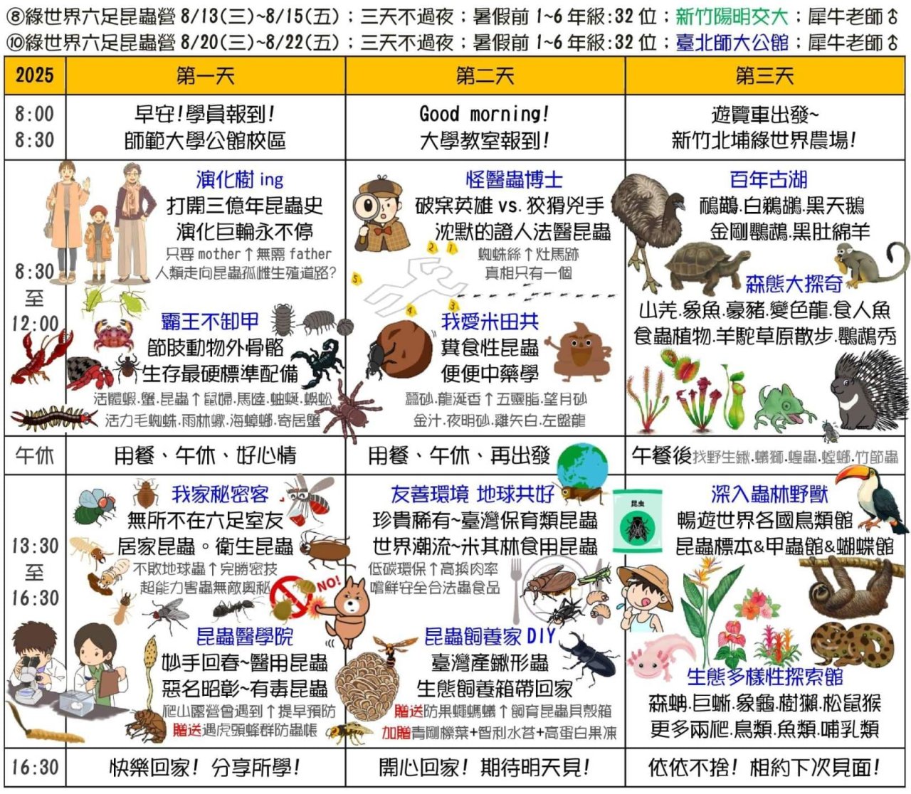 一、2025生態素養夏令營日期7/2~8/26,招生涵蓋大班-九年級學員,請依不同課程分齡參加,