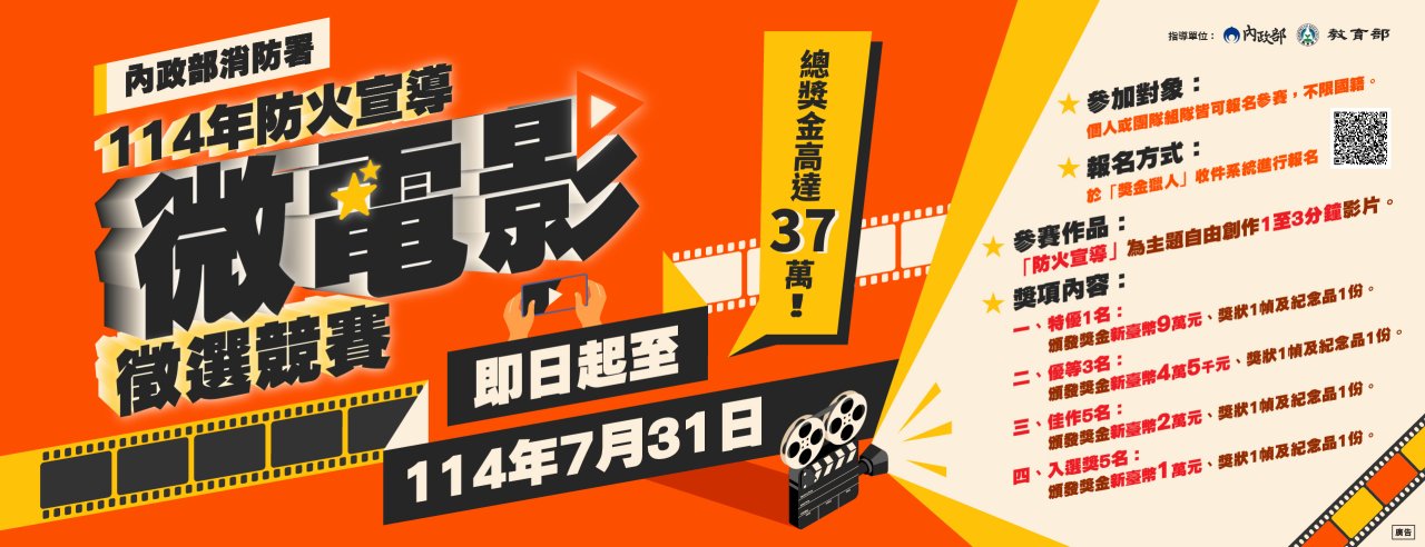 檢送內政部消防署「114年防火宣導微電影徵選競賽活動辦法」及徵件圖卡(附件2)等資訊各1份