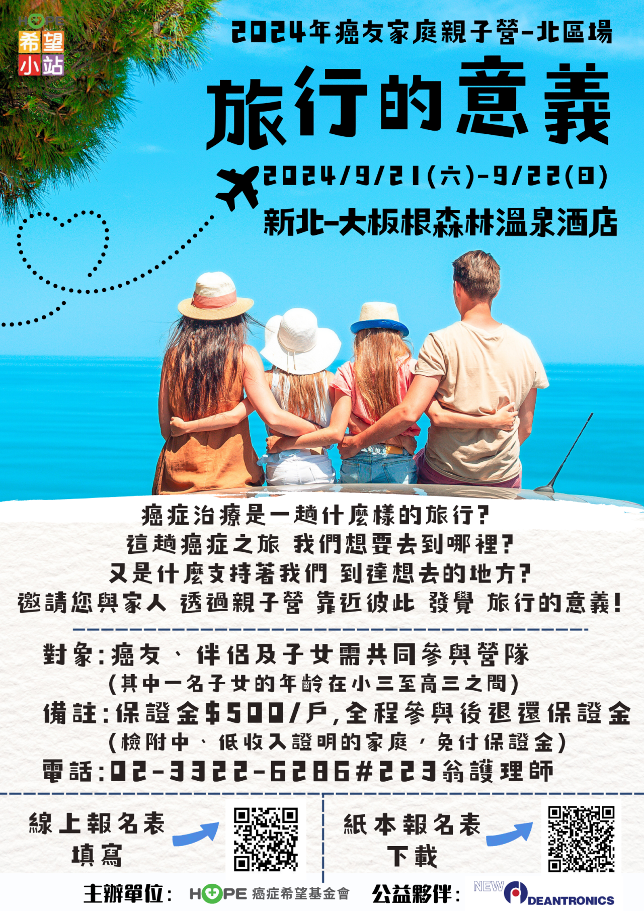 三、活動可採線上報名,相關資訊請詳見海報,親子營報名時間即日起至113年8月18日止,如報名額滿會提早截止,依官網實際公告為主。