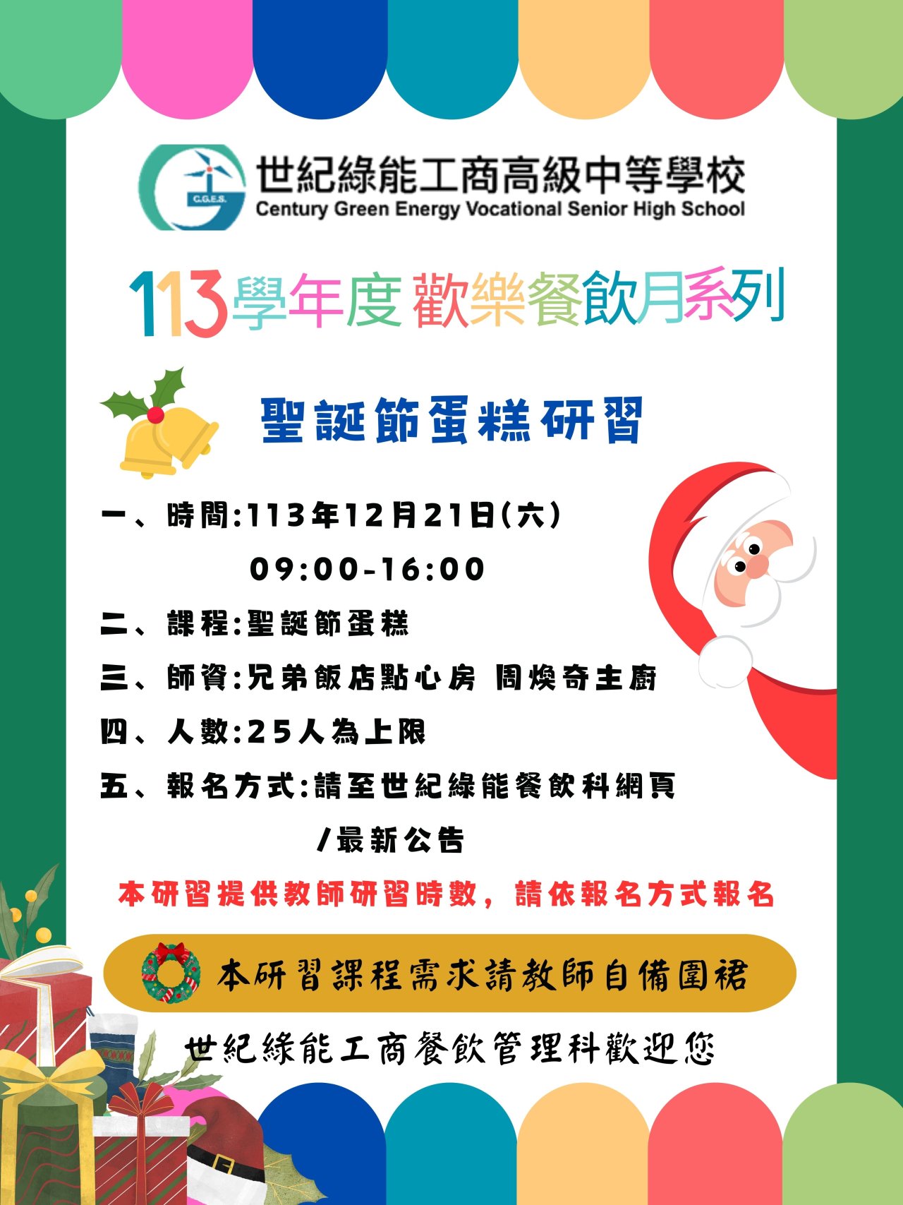 世紀綠能工商辦理「聖誕節蛋糕」研習,訊息如下: