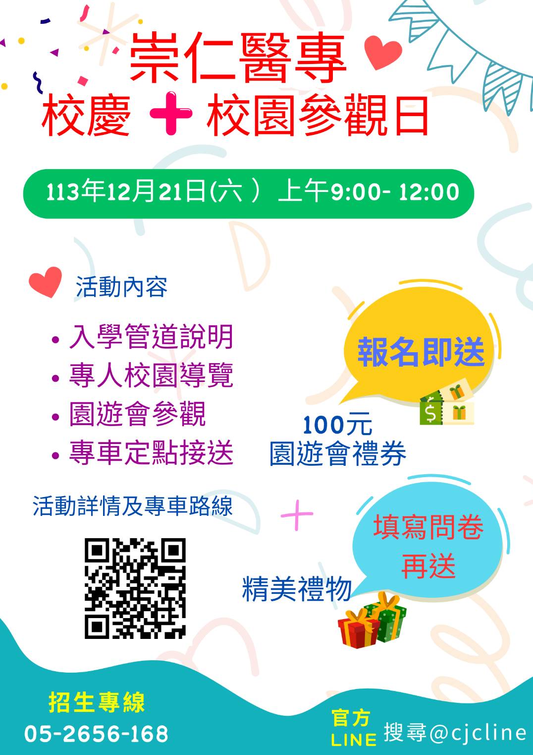 活動聯繫電話:(05)2656168 招生中心。