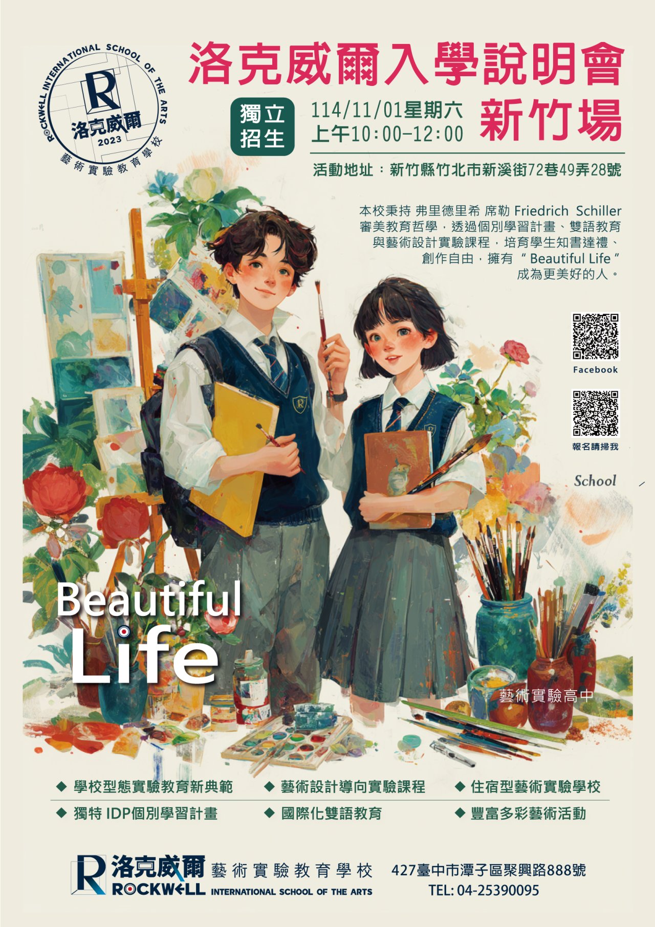 臺中市私立洛克威爾藝術實驗教育學校辦理「115學年度入學說明會—新竹場」,訊息如下: