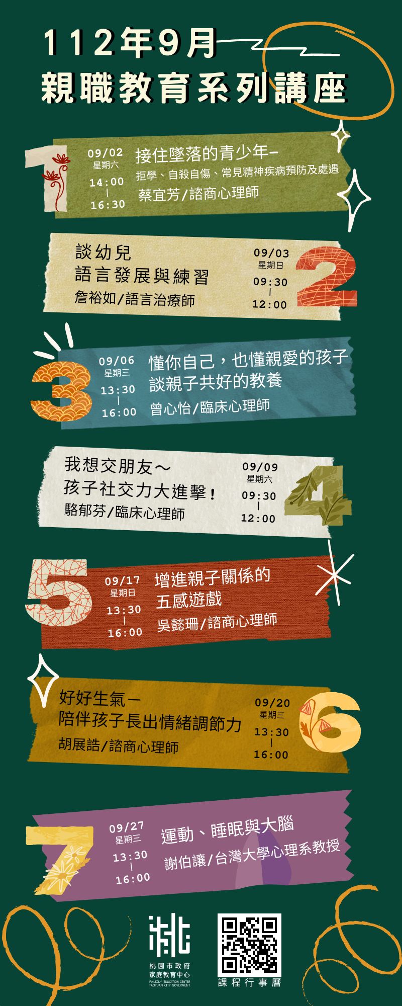 另倘有家庭教育個別化服務需求,可撥打4128185諮詢專線或申請小桃家線上諮詢室(https://reurl.cc/oZWOY5)服務。